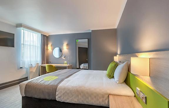 Put your feet up, unwind, and stretch out in the spacious and stylish Express King Room. Featuring a luxurious king-size bed with a premium Hypnos mattress, you’ll enjoy maximum comfort. Stay connected with fast, free Wi-Fi, and enjoy your favourite shows on the Smart TV. With a Nespresso® machine, and unlimited tea and coffee in the lounge area, the Express King Room has everything you need for a relaxing and indulgent stay.